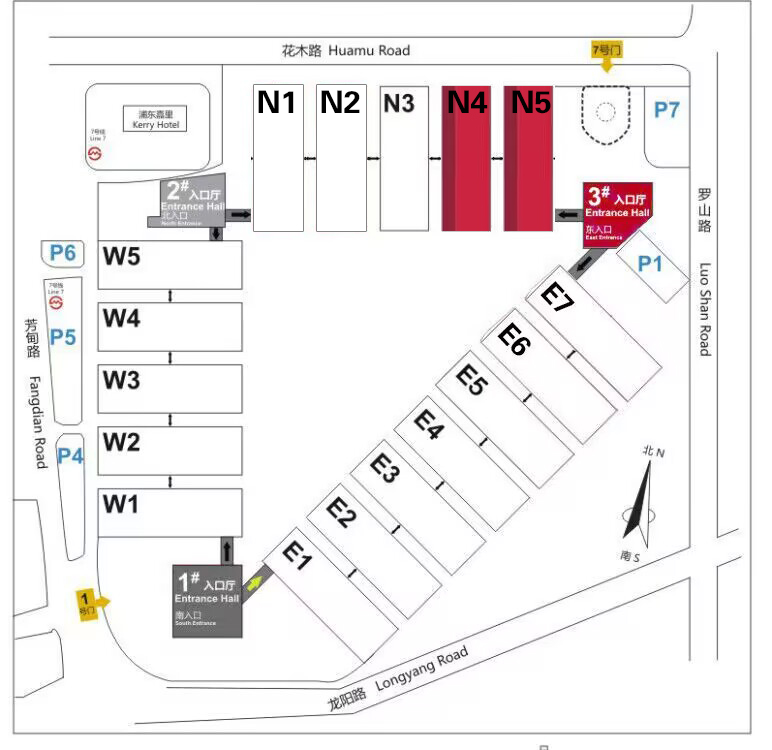 如何快速达到展馆? 地铁7号线:终点站花木路1号出口,即可步行进入2号登记大厅(北入口大厅)。 出租车:请告诉出租车司机停在花木路1750号,7号门入口由此向前步入3号登记大厅。 自驾车:请停靠花木路1750号,7号门进入P1停车场,步行3号登记大厅(东入口大厅)。